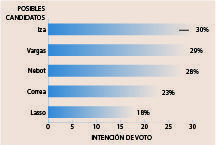 Los dos primeros lugares de esta lista la ocupan los líderes indígenas Leonidas Iza y Jaime Vargas (juntos suman 59%), a quien inclusive le provoca ser candidato presidencial y Presidente de la República del Ecuador.